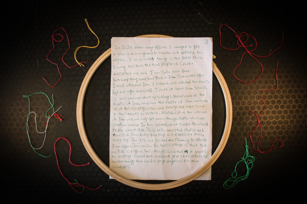 Naša draga voditeljica radionice – Tayebeh Ebrahim, podijelila je s nama svoju životnu priči a na to ju je potaknula trenutna politička situacija u Iranu. Njezine riječi su nas dodatno motivirale da izvezemo poruku koju želimo poslati s ove radionice: WE NEED WORLD PEACE.